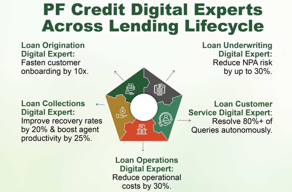 PF Credit encompasses five distinct domain-rich Digital Experts, each designed to address specific challenges in the lending process: